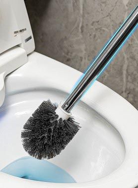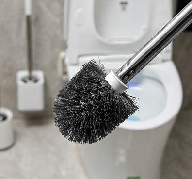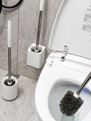 Brosse de toilette en plastique avec pied rond, accrochable, blanc