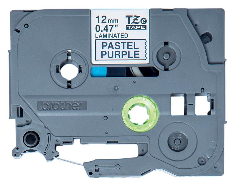 Ruban TZe laminé 12mm écriture noire 'pastel purple' (4 m)
