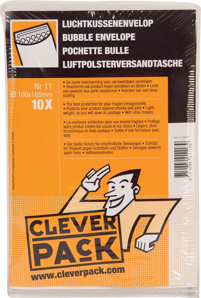 Cleverpack enveloppes à bulles d'air, ft 100 x 165 mm, avec bande adhésive, blanc, paquet de 10 pièces