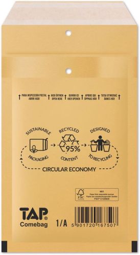 Comebag enveloppes à bulles d'air, ft 100 x 165 mm, avec bande adhésive, brun, boîte de 200 pièces