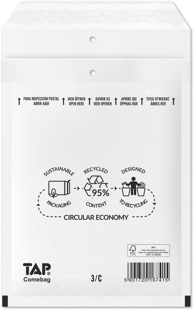 - En papier kraft de 75 g/m² avec pochette à bulles de polyéthylène (amovible) Avec bande adhésive En matériel 95 % recyclé Facile à séparer, facile pour triage et recyclage séparés ft 150 x 215 mm, blanc, boîte de 100 pièces