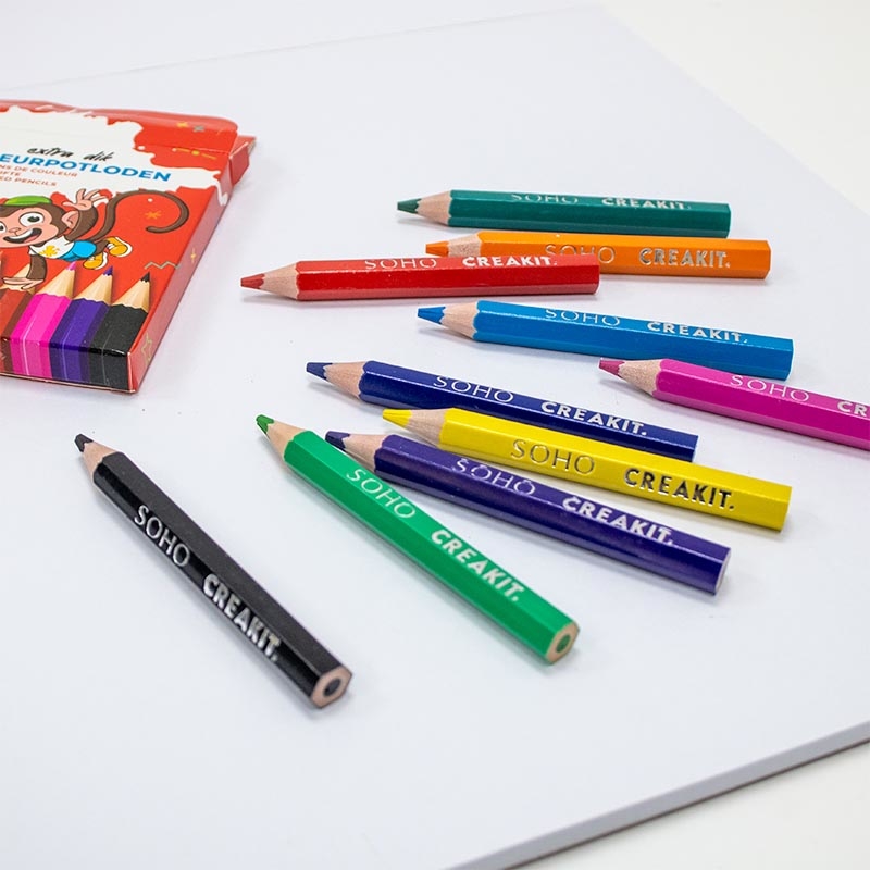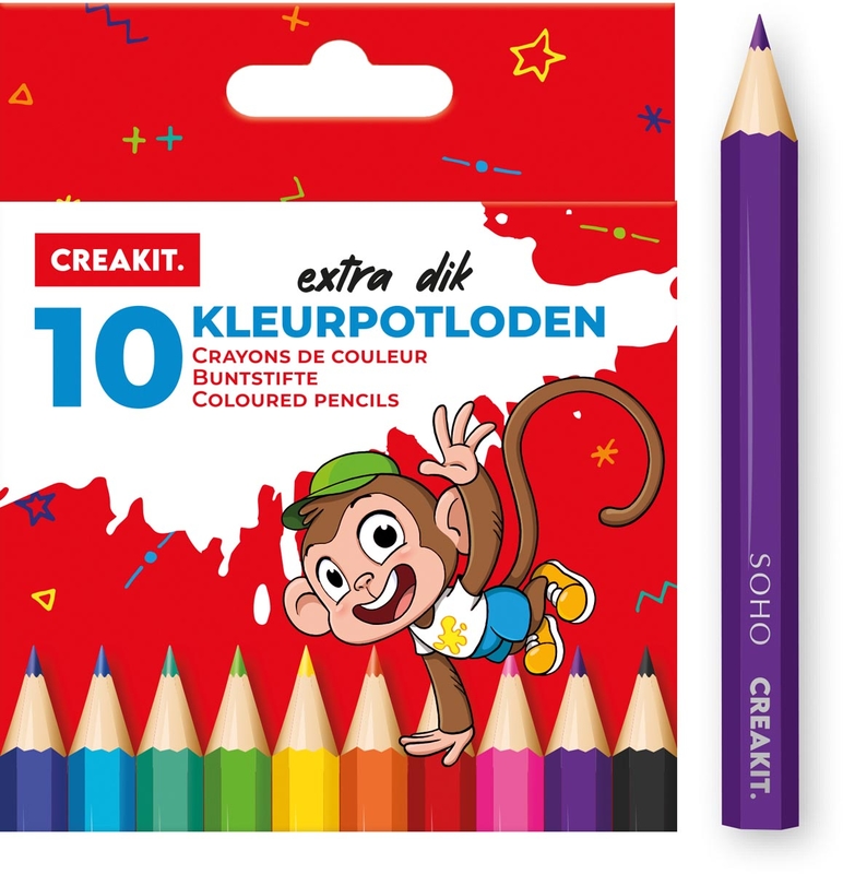 Creakit kleurpotloden, 9 cm, extra dik, etui in karton van 10 stuks in geassorteerde kleuren