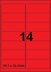 DBS étiquettes 99,1 x 38,1 mm, 14 par feuille, rouge 200 pag