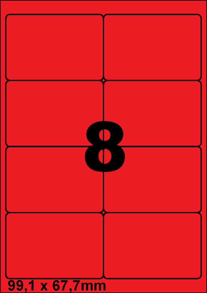- 8 par feuille. Avec coins arrondis - rouge