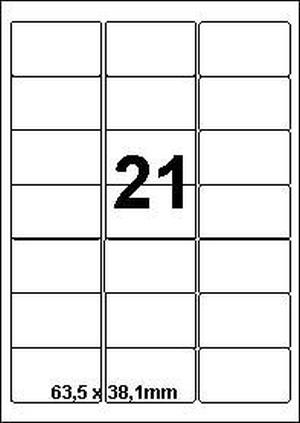 DBS étiquettes° 63,5 x 38,1mm, 21 par feuille, blanc, 200 feuilles