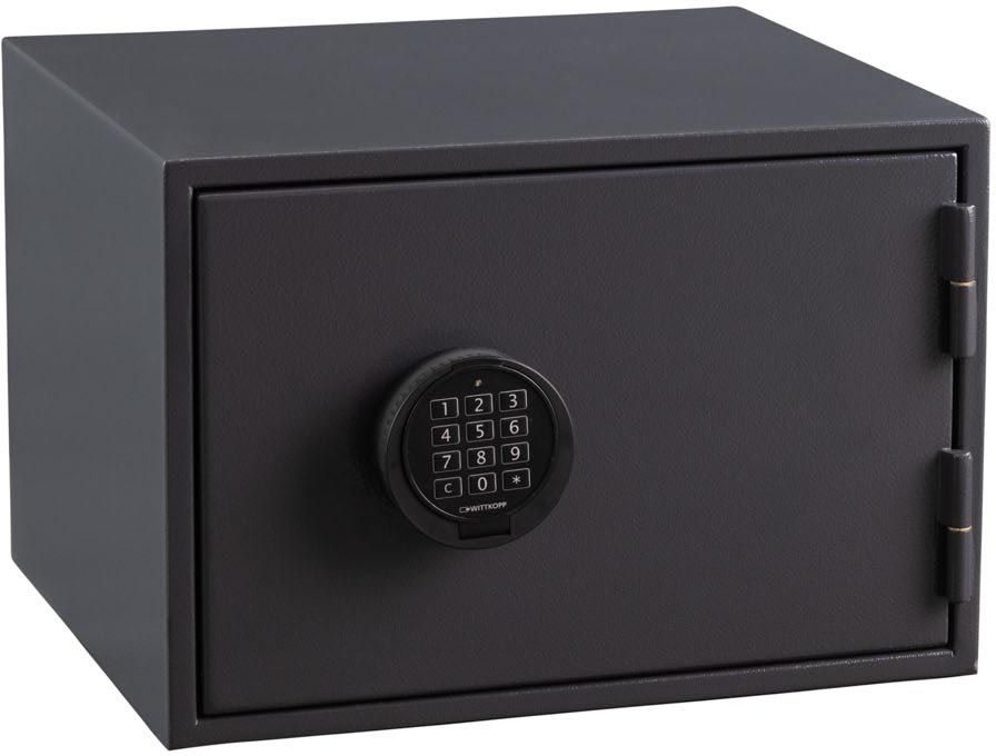 - Protection contre l'effraction Conçu pour le rangement d'objets de grande valeur Préparé avec des trous pour la fixation au sol et au mur (matériel inclus) Avec serrure à clé à double panneton (Série K) ou combinaison électronique programmable (Série E) Couleur: anthracite, RAL 7024 avec combinaison électronique, contenu: 26 l, ft extérieur 40 x 29 x 37,5 cm (l x h x p), ft intérieur 35 x 24 x 29,5 cm (l x h x p)