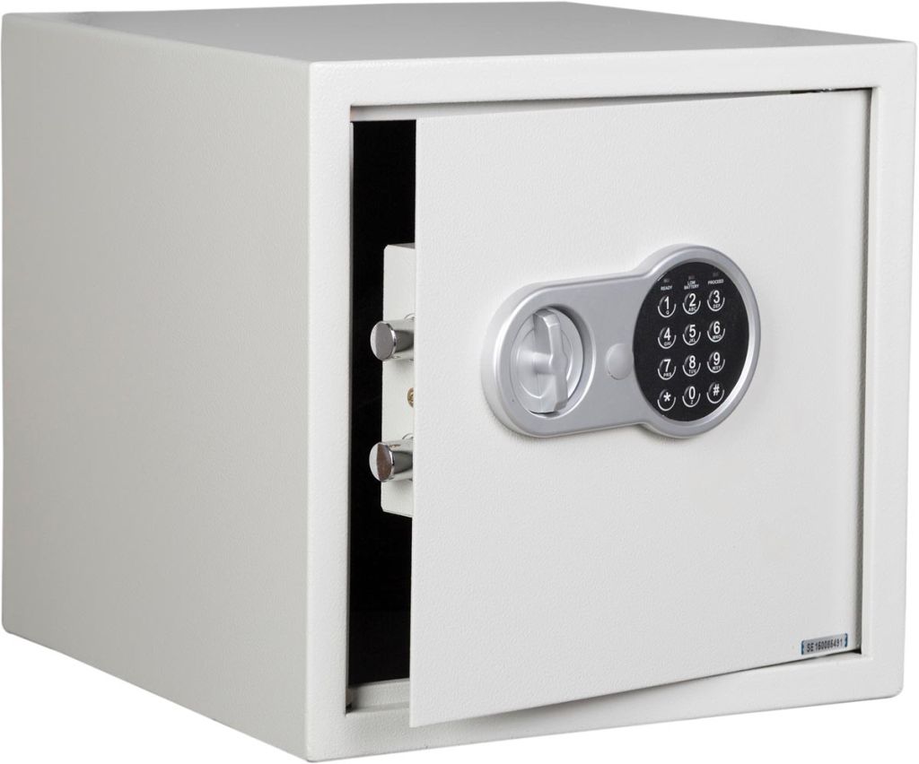 - Protection contre l'effraction Conçu pour le rangement d'objets de grande valeur Préparé avec des trous pour la fixation au sol et au mur (matériel inclus) Couleur: gris, RAL 7035 Protector Universal 3E, avec serrure à combinaison et serrure à clé pour ouverture d'urgence (2 clés fournies), ft extérieur 36 x 35 x 38 cm (l x h x p), ft intérieur 35,7 x 34,7 x 33 cm (l x h x p)