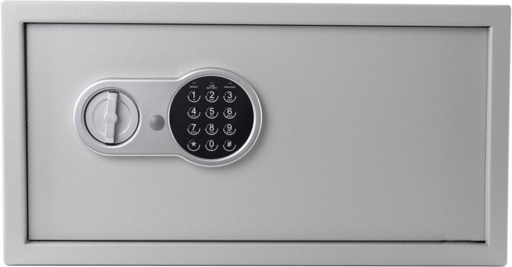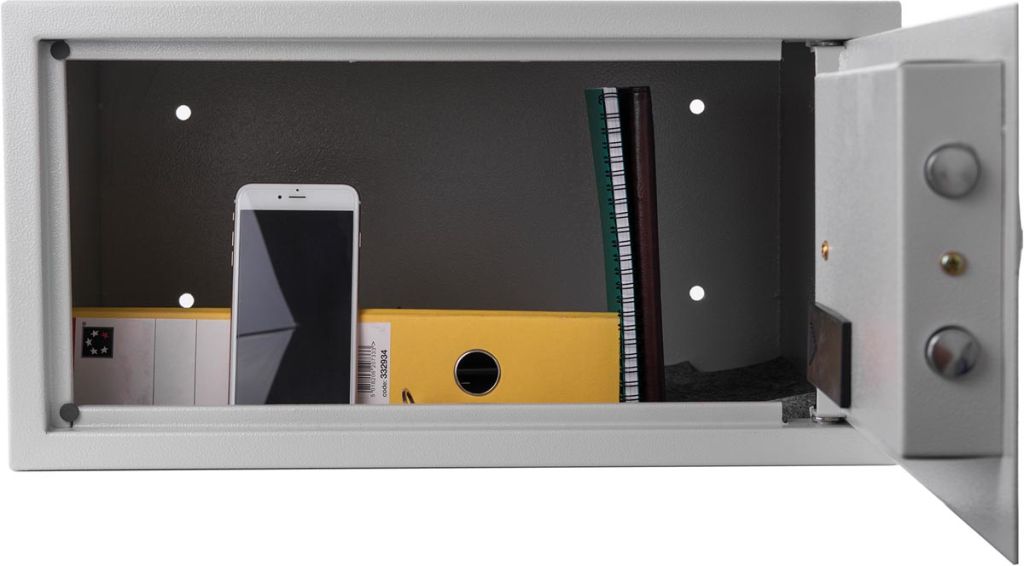 - Protection contre l'effraction Conçu pour le rangement d'objets de grande valeur Préparé avec des trous pour la fixation au sol et au mur (matériel inclus) Couleur: gris, RAL 7035 Protector Universal LTPE, avec serrure à combinaison et serrure à clé pour ouverture d'urgence (2 clés fournies), ft extérieur 50 x 26 x 41 cm (l x h x p), ft intérieur 49 x 25 x 34 cm (l x h x p), convient à ordinateurs portables de 17 pouces