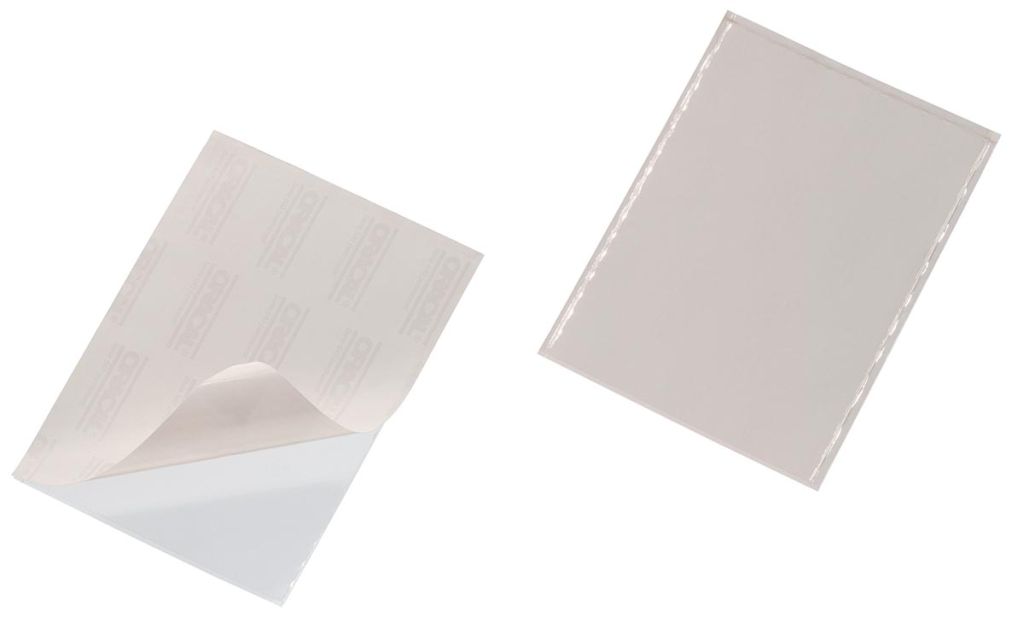 - Pochettes adhésives en ft A5 (14,8 x 21 cm) avec insertion du document par le haut