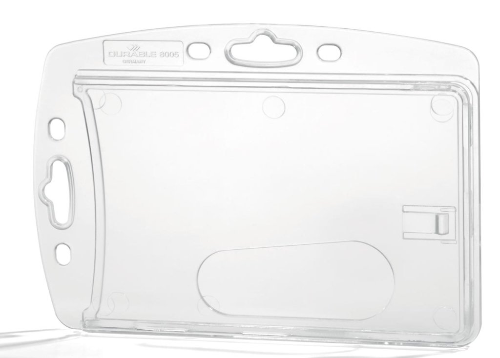 - Boîtier en plastique rigide pour carte de sécurité avec une encoche au dos permettant le retrait ou le remplacement du badge