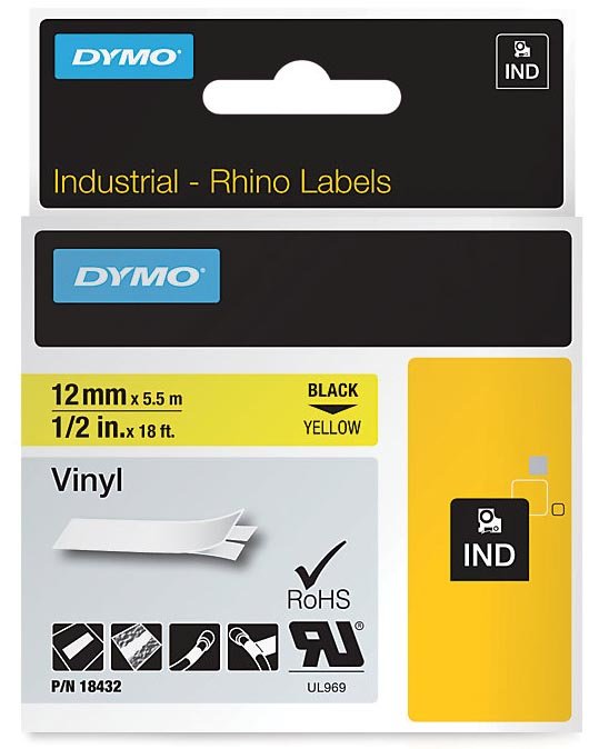 Dymo rubans RhinoPRO 12 mm x 5,5 m, jaune, vinyle