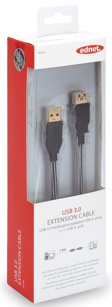 Ednet câble d'extension USB 3.0, 1,8 mètre, plaqué or