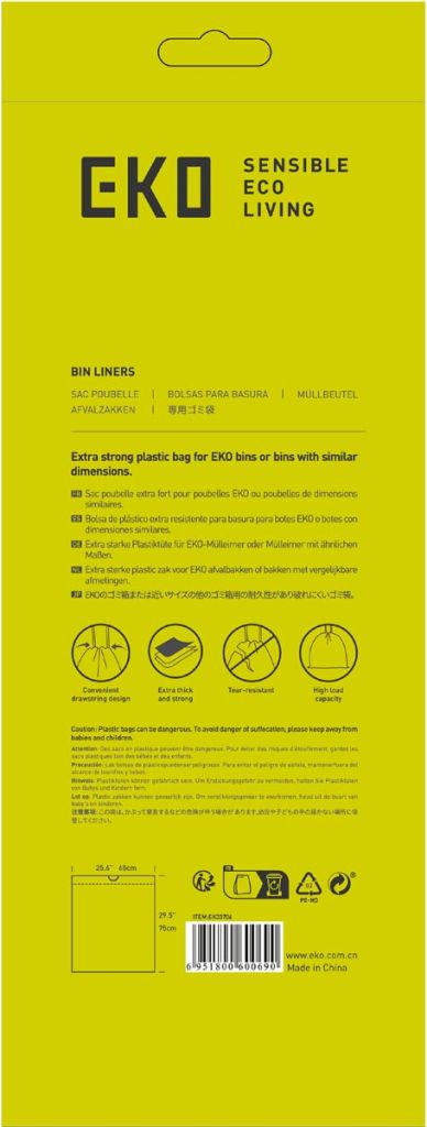 - En plastique très résistant Convient aux poubelles EKO ou aux poubelles de taille similaire Comprend un cordon pratique pour faciliter la fermeture et le transport du sac poubelle