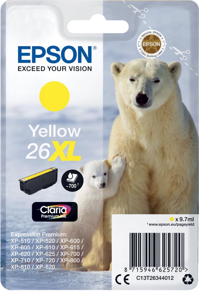 Epson cartouche d'encre 26XL, 700 pages, OEM C13T26344012, jaune