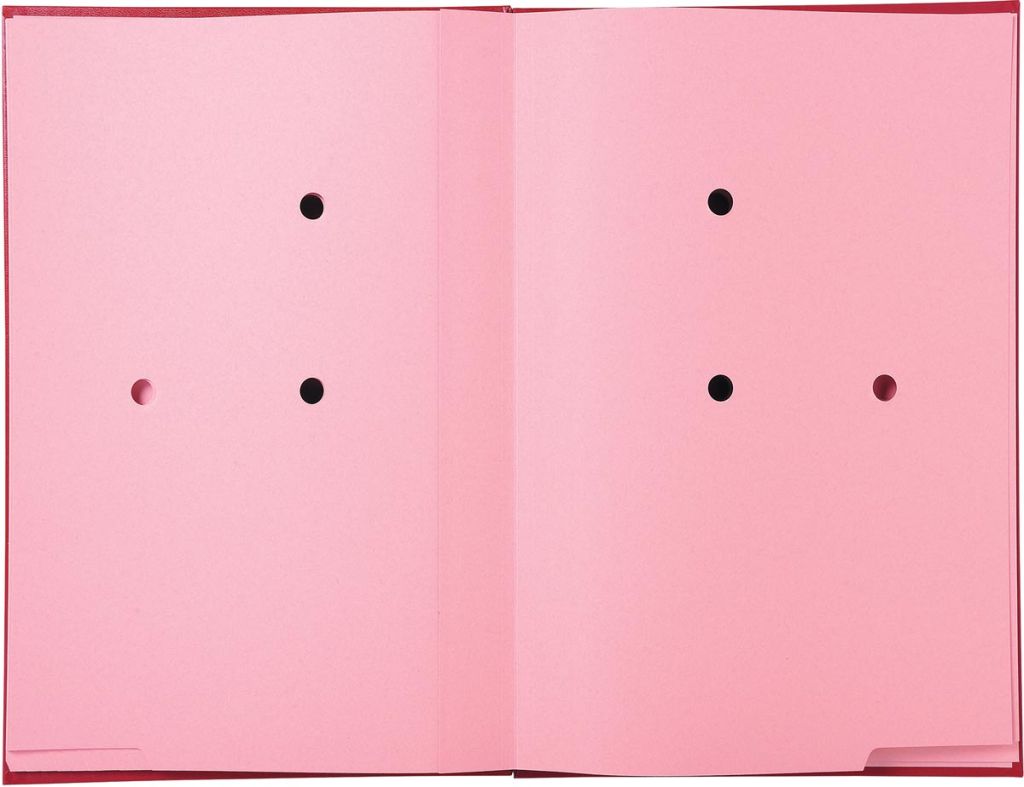 - Intérieur en carte rigide 300 g/m2 rose ; perforation en 3 points des compartiments afin de déceler la présence de documents