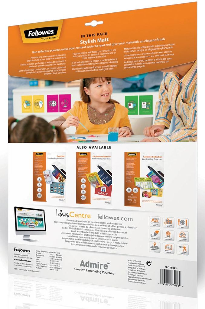 Fellowes pochette à plastifier Admire Stylish Matt Enhance80 ft A3, 160 microns (2x80 microns), 25 pièces