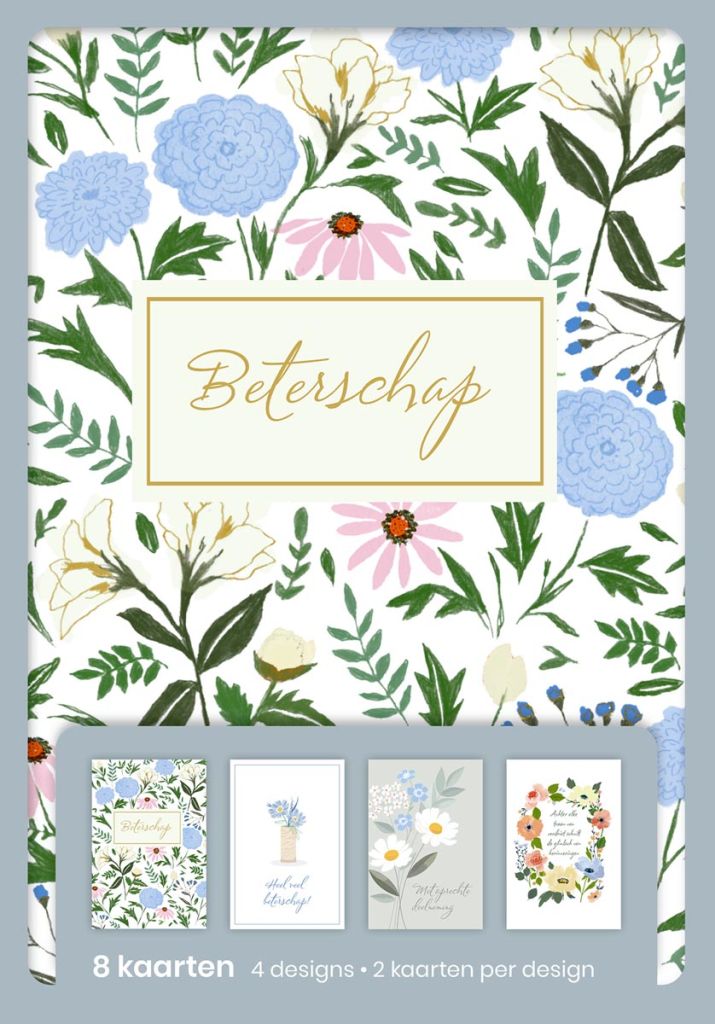 - Cartes de luxe avec enveloppe 4 designs différents 2 cartes par design Sur blister prompt rétablissement, néerlandais