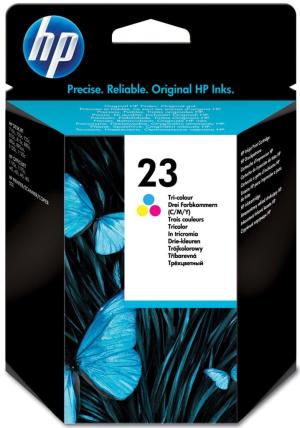 HP cartouche d' encre No. 23 3-colore 30ml Capacité 690 pages Poids: 179g HP deskjet 710, 710c, 712, 712c, 720, 720c HP deskjet 810c, 812c, 815c, 830c, 880c, 882c, 890c, 890cse, 890cxi, 895cxi, 895cse, 895c, 1120c, 1220cse, 1220cxi, 1125c HP officejet pro 1170, 1170c, 1170cxi, 1170cse HP officejet pro 1175, 1170c, 1170cse, 1170cxi HP officejet r40, r40xi, r45, r60, r65, r80, r80xi HP officejet t45, t45xi, t65, t65xi HP psc 500, 500xi HP color copier 140, 145, 150, 155, 160, 170, 260, 270 HP no. 23 Tri-colour inkjet print cartridge (30 ml). Aussi pour : Officejet R85, R95, Officejet Pro 1170C, 1175C