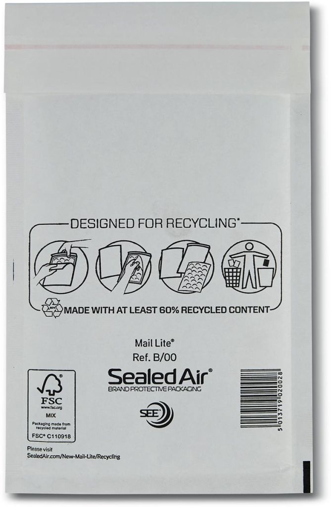 Mail Lite enveloppes à bulles d'air, blanc, B/00, 120 x 210 mm, boîte de 200 pièces