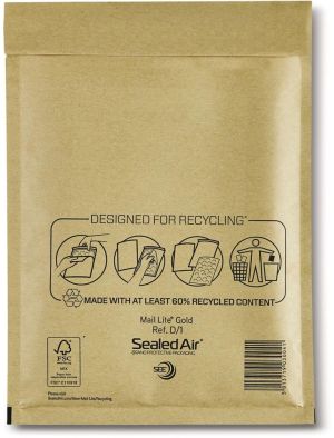 Mail Lite enveloppes à bulles d'air, or, D/1, 180 x 260 mm, boîte de 100 pièces