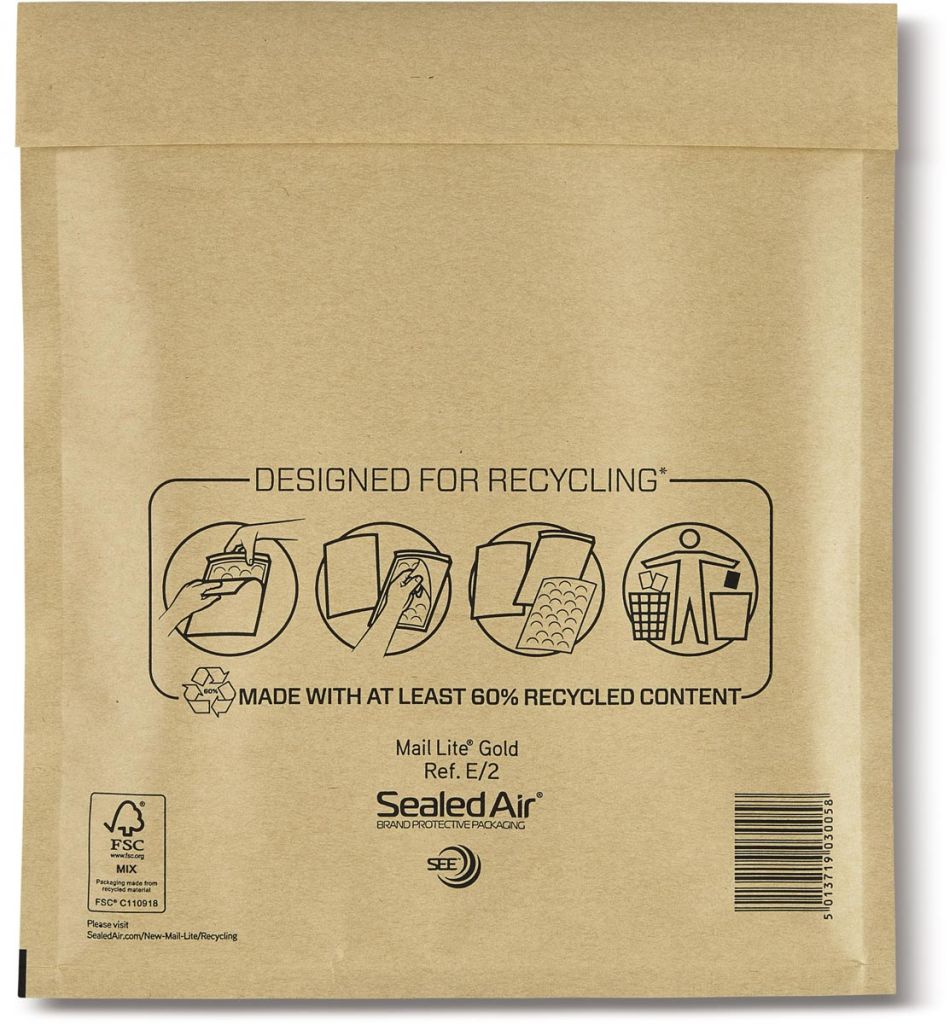 Mail Lite enveloppes à bulles d'air, or, E/2, 220 x 260 mm, boîte de 100 pièces
