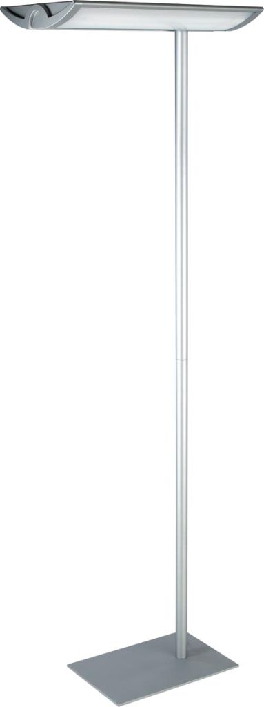 - Double usage: éclairage direct pour le plan de travail et indirect pour la lumière ambiante Eclairage 30% vers le haut et 70 % vers le bas Peu encombrant: mat excentré, peut être poussé sous le bureau Conception technique de sécurité signée MAUL Livréavec 2 lampes basse consommation de 55 watt (culot 2G11), 4500 Kelvin, blanc neutre Le luminaire est vendu avec deux lampes de classe énergétique "A" Consommation d'énergie pondérée: 61 kWh/1000h par lampe La durée de vie des lampes est de 16.000 heures Eclairement de 1250 lux à 85 cm vers le bas (800 lux à 110 cm) Eclairement de 520 lux à 85 cm vers le haut Flux de 4500 lumen par lampe Solide mat en aluminium Hauteur: 190 cm Tête de 33 x 62 cm, munie d´une grille perforée sur le dessus et un diffuseur sur le dessous Commutateur sur la tête de la lampe Solide socle en acier, 28 x 42 cm Ce luminaire est compatible avec les lampes des classes énergétiques A+ à B