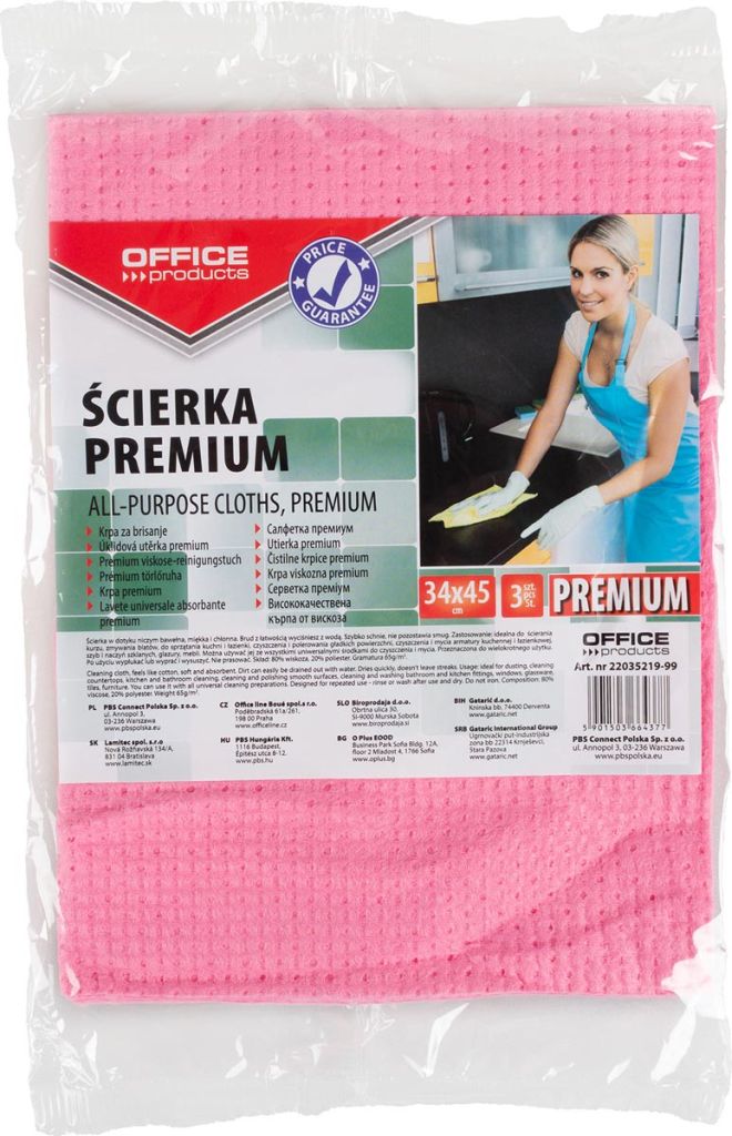 OFFICE products chiffons vaiselles premium, 34 x 45 cm, couleurs assorties, paquet de 3 pièces