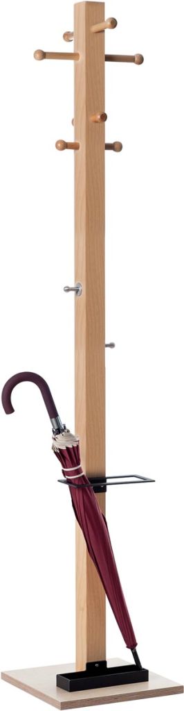 - ) Porte-parapluies peut accueillir jusqu à 6 parapluies Coupelle de récupération d' eau 8 patères en bois massif hêtre vernis: permettent une grande capacité d accroche et garantissent le respect des vêtements 2 patères en acier chromé (support sac à main, sac à dos ..
