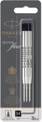 Parker Quinkflow recharge pour stylo bille, pointe moyenne, noir, blister de 3 pièces