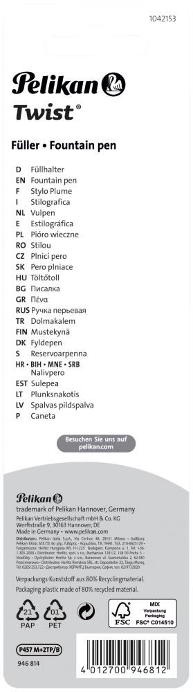 - Plume moyenne en acier inoxydable Grip ergonomique, grâce à la forme torsadée Couleur de l'encre: bleu Pour droitiers et gauchers Recharge incluse corps noir, sous blister