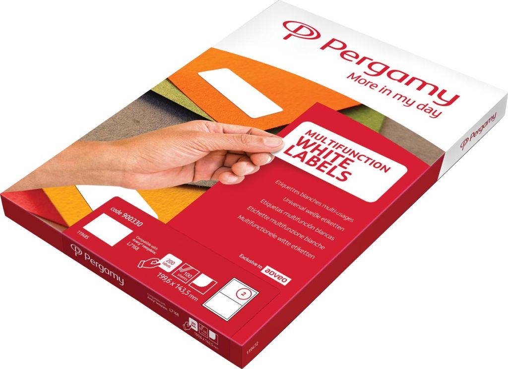 Pergamy étiquettes blanches, ft 99,1 x 38,1, coins arrondis, paquet de 1400 étiquettes