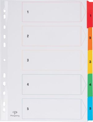 Pergamy intercalaires avec page de garde, ft A4, perforation 11 trous, couleurs assorties, set 1-5