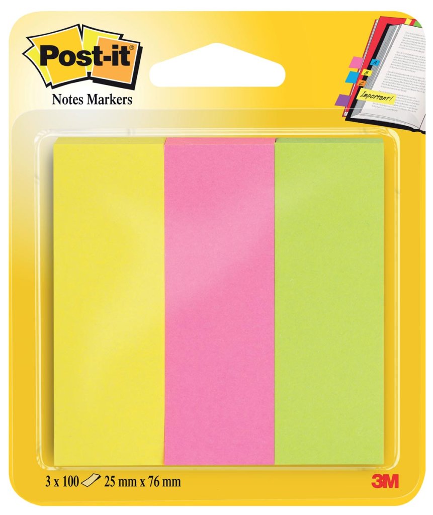 Post-it notes marque pages, 25 x 76mm, neon couleurs assorties 3x100 feuilles