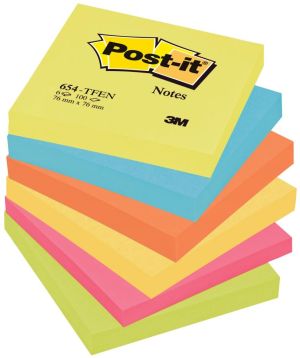 - Bloc de 100 feuillets-mémo ft 76 x 76 mm, paquet de 6 bloc, couleurs assorties neon: 2 x jaune, orange, fuchsia, vert, bleu,