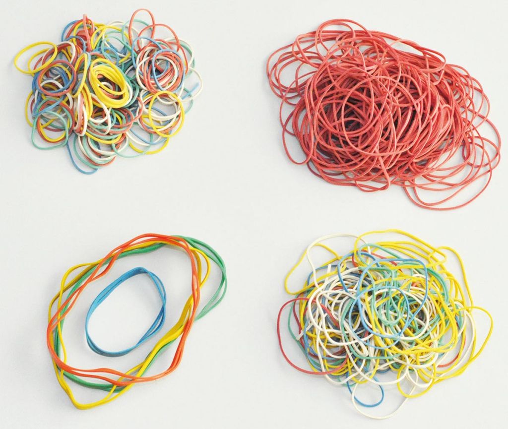 Q-CONNECT élastiques, largeur 1,5 mm, longueurs différentes, 25 g, couleurs assorties