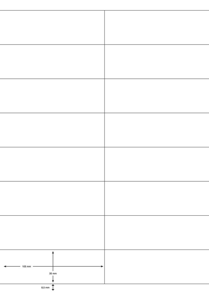 - ft 105 x 35 mm, coins carrés, 100 feuilles, 16 étiquettes par feuille, 1.600 étiquettes