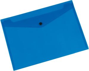 Q-CONNECT pochette documents, A4, PP transparent, fermeture à bouton-pression, bleu