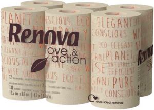 Renova Love & Action papier toilette, 2 plis, 130 feuilles, paquet de 108 rouleaux