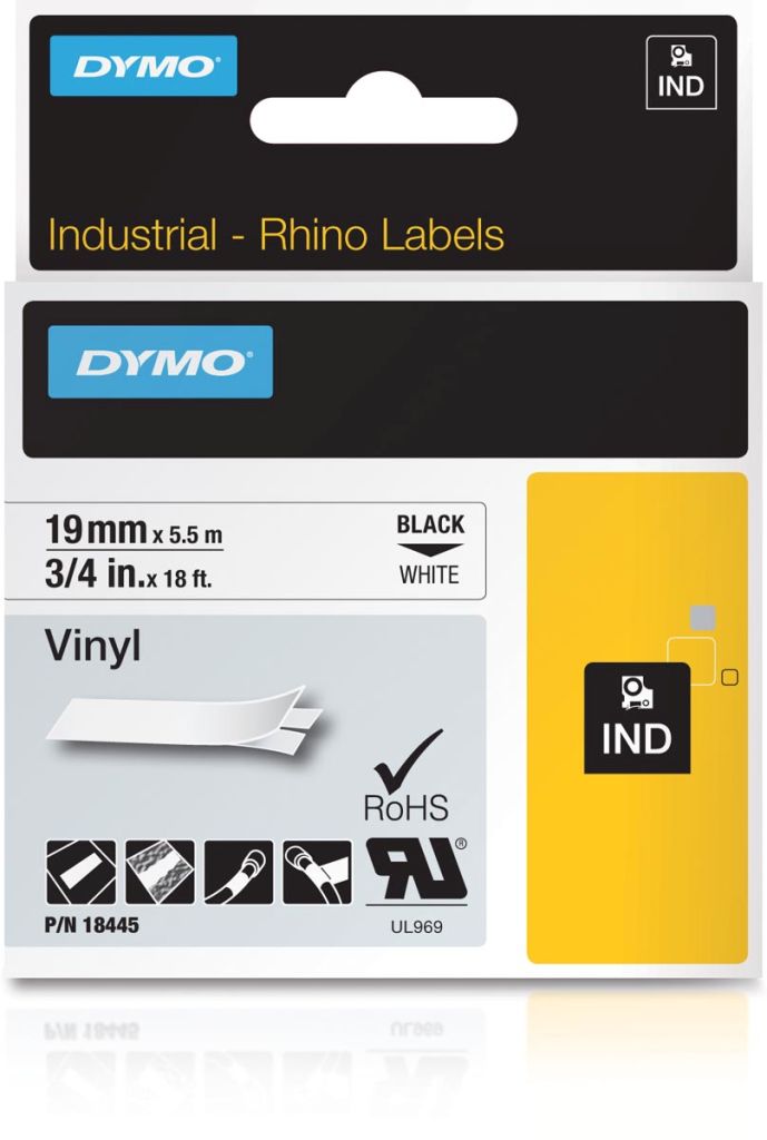 Rhino ruban vinyle, 19 mm x 5,5 m,noir sur blanc