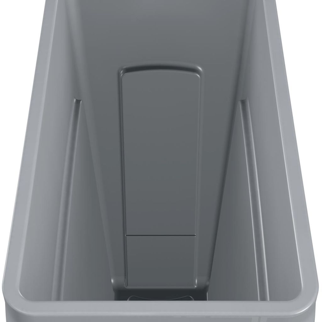 - Forme et taille efficaces pour les petits espaces Durable et résistant à la rupture Avec des fentes d'air pour une collecte plus efficace des déchets En polyéthylène 10 ans de garantie Couleur: gris contenance: 87 l