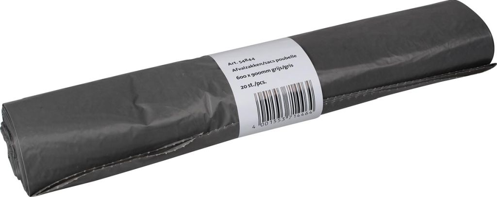Sac poubelle 25 microns, ft 60 x 90 cm, 70 litres, gris, rouleau de 20 pièces