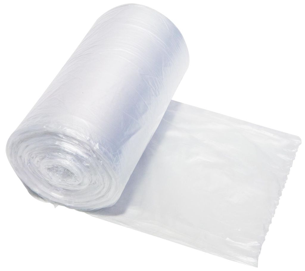 Sac poubelle HDPE, 0,16 microns, ft 39 x 49 cm, 10 l, transparent, rouleau de 50 pièces