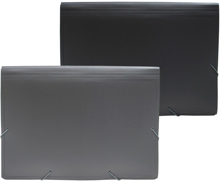 - Pour ft A4 En PP opaque Avec 12 compartiments Fermeture à élastiques Couleurs assorties: gris et noir