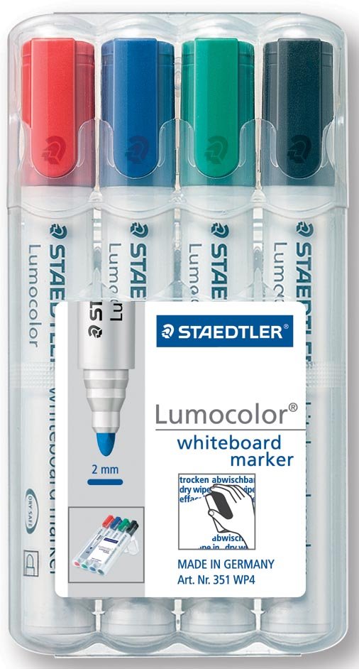Staedtler marqueur pour tableaux blancs Lumocolor, étui de 4 pièces en couleurs assorties
