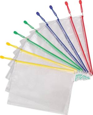 - Enveloppes en PVC tissé ultra-résistant 230/100ème, fermeture eclair métallique de couleur avec lanière