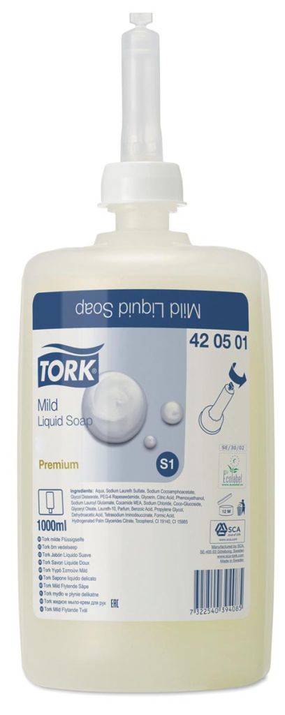 Tork savon doux liquide, système S1 Premium, recharge de 1 litre