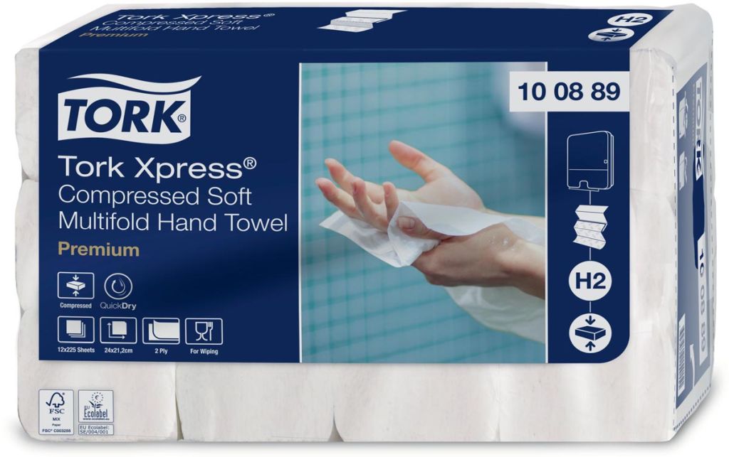 Tork Xpress® essuie-mains comprimés doux, multifold Z, Premium, 2 plis, système H2, 12 x 225 feuilles