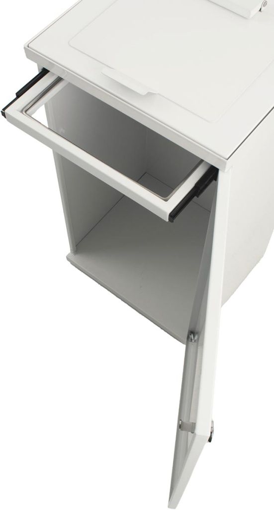 - Poubelle modulaire en acier peint par poudrage La poubelle est munie d'une porte à l'avant Le porte-sac peut être tiré vers l'avant à l'aide d'un rail, pour changement facile et ergonomique du sac Y compris le matériel de connexion afin que plusieurs unités puissent être reliées entre elles Récipient intérieur, top et couvercle disponibles séparément Ft: 38,5 x 33,5 x 70 cm (l x L x h) Capacité: 85 l blanc