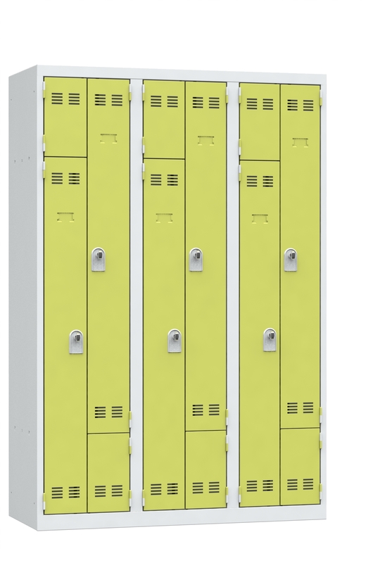 Vestiaire monobloc gain de place, 3 colonnes, 180 x 120 cm, anis