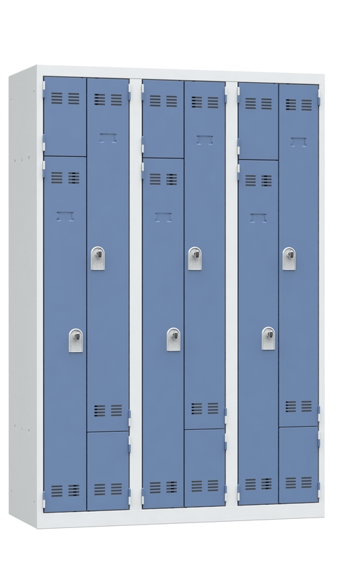Vestiaire monobloc gain de place, 3 colonnes, 180 x 120 cm, bleu
